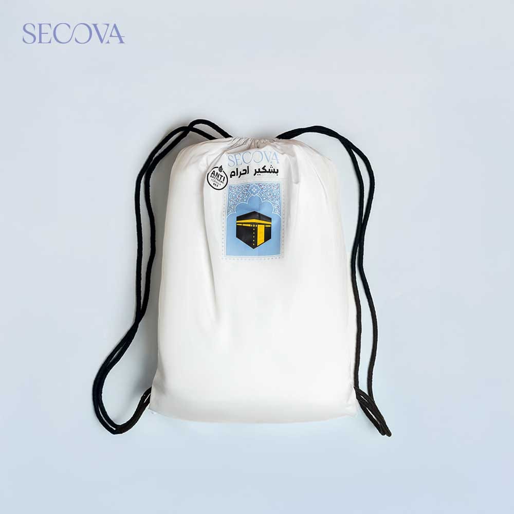 the Ihram towel made from high-quality microfiber materials by Secova, treated with antibacterial properties to ensure your comfort and hygiene.